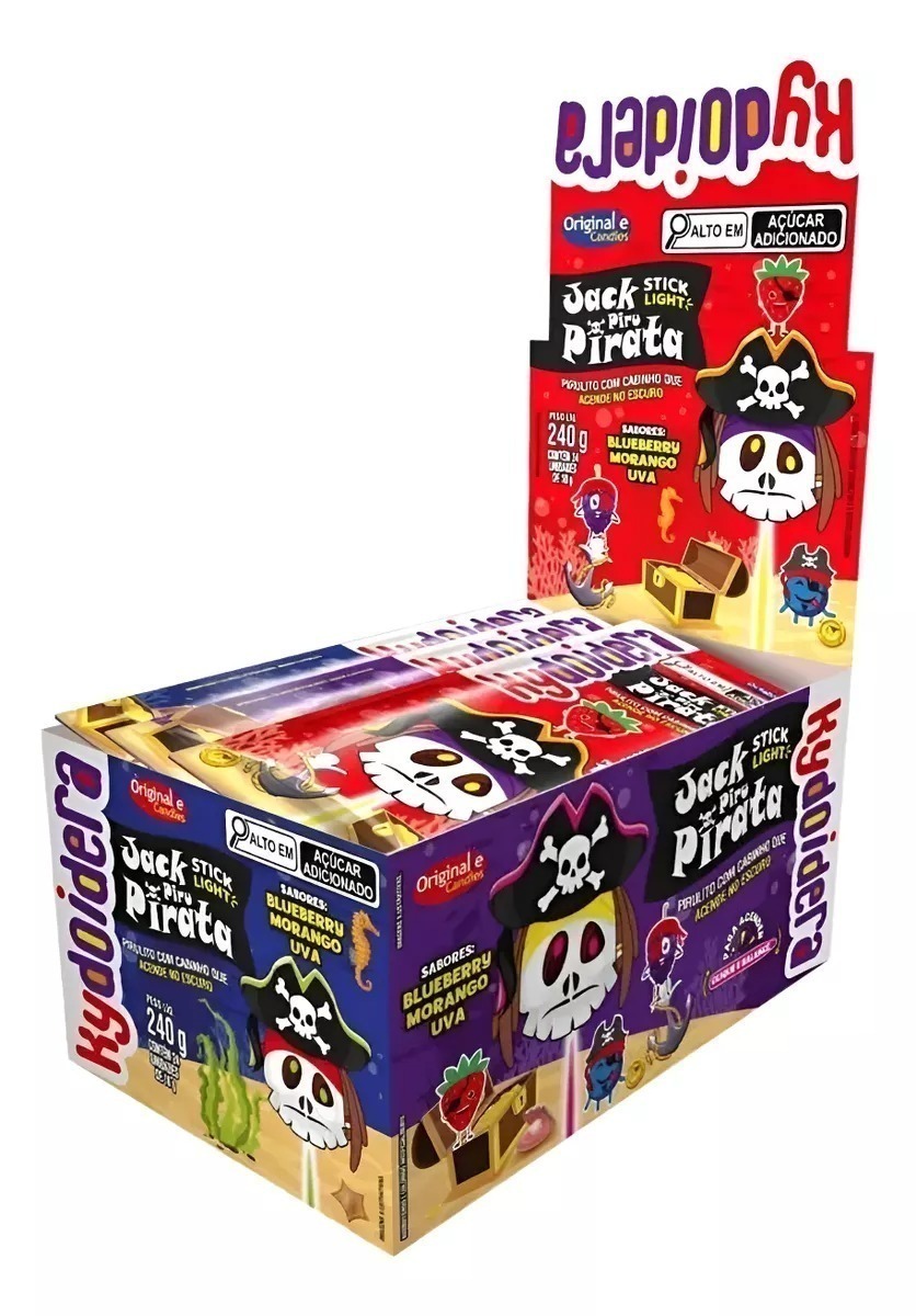 Os Pirulitos Kydoidera Jack Pirupirata são a combinação perfeita de diversão e sabor, trazendo um toque especial para qualquer festa! Com um brilho encantador que ilumina a escuridão, cada pirulito oferece uma experiência gustativa incrível.