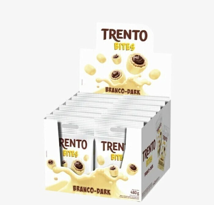 Muito mais sabor em cada mordida! Trento Bites Branco-Dark é um wafer recheado sabor chocolate meio amargo coberto com chocolate branco. Todo o sabor de Trento em deliciosas pequenas porções! Experimente!